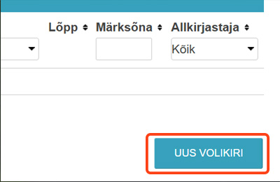 Vastutava kasutaja lisamine registreerimistunnistusele vajab eraldi volikirja (täpsem info küsi müügiinimeselt)